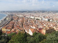 メインストリートである「ジャン・メドサン通り」を南下していく。すると、「マセナ広場」へと到着。旧市街を抜けて城郭跡をめざす。丘の上につくられているので、基本的に上り坂となる。それでも、登山というほどではない。城郭跡からの風景は、予想以上に美しいものであった。赤い屋根と青い海のコントラストが抜群である。
